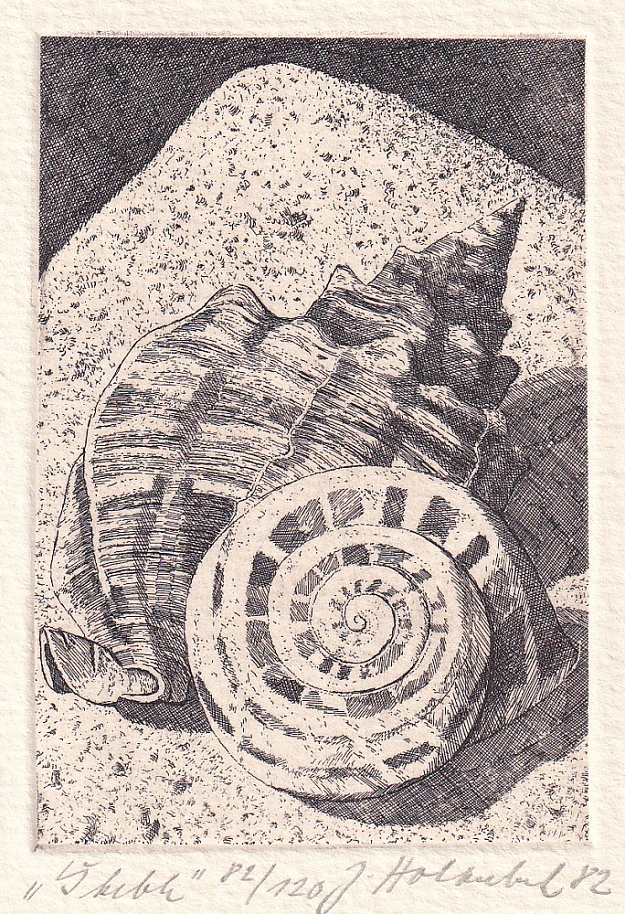 litografie, 1982, 8,8 x 6 cm, sign. PD J. Holoubek 82, č. 82/120, Antikvariát Dlážděná, žák prof. L. Čepeláka na AVU v Praze, člen výtvarné společnosti Kruh a SČUG Hollar
