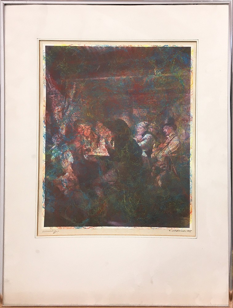 monotyp, 1995, 33 x 26,5 cm, sign. PD Václav Malina 95, rám, žák prof. Sýkory, člen UVU a TT klubu v Brně