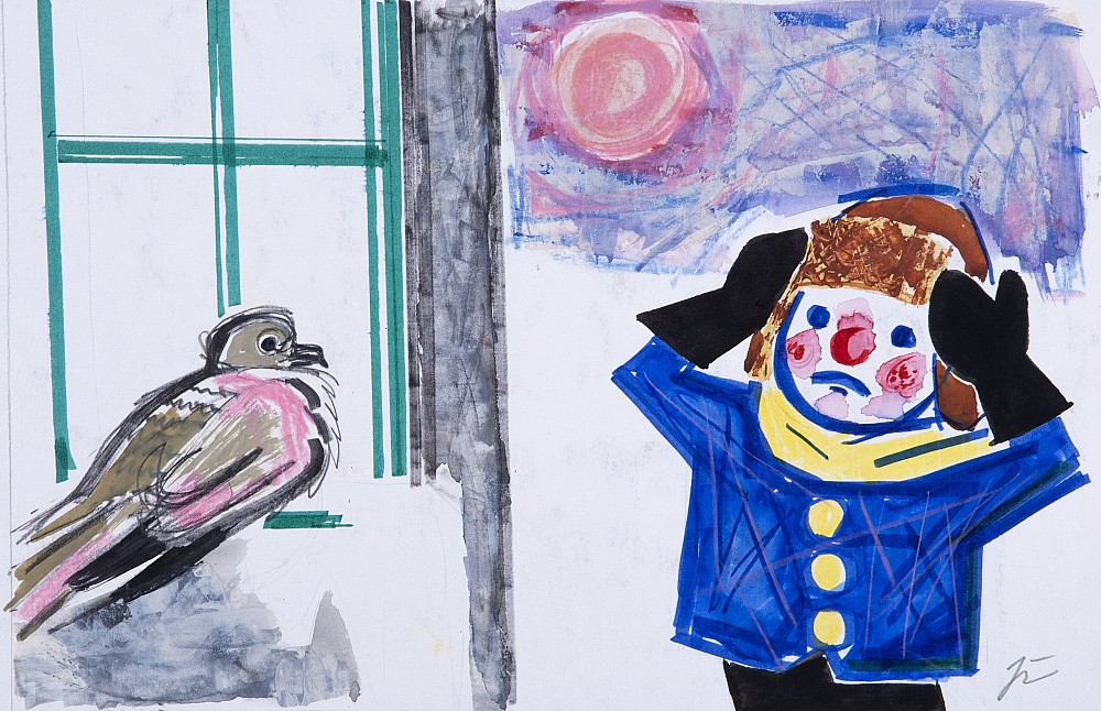 akvarel, tuš, tužka, papír, 29,5 x 42 cm, sign. PD JŽ, Antikvariát Dlážděná, žák prof. A. Paderlíka a K. Součka na AVU v Praze, člen skupiny K.Q.N.