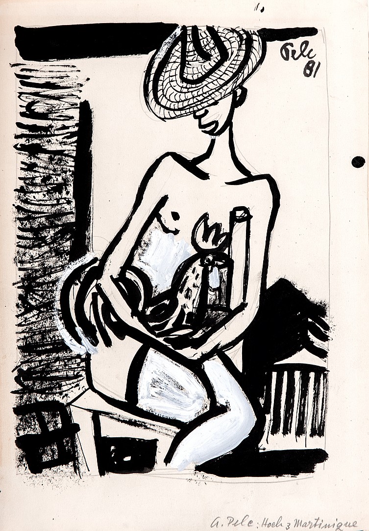 tuš, běloba, papír, 1961, 29 x 20,5 cm, sign. PN Pelc 61, žák prof. Bukovace a M. Pirnera na AVU v Praze, člen SVU Mánes