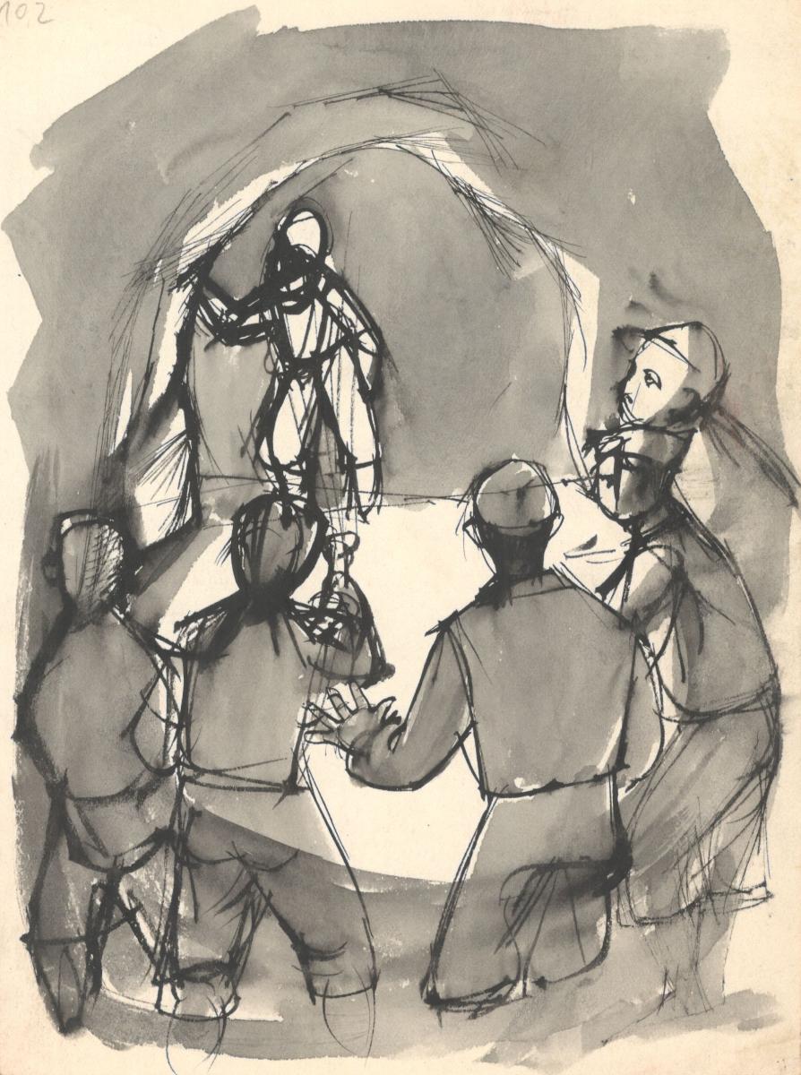lavírovaná tuš, papír, 20 x 15,1 cm, lehce zašlý papír, na pravém okraji papír lehce ušpiněn, Antiqari.at Radhošťská, antiqari.at Radhošťská