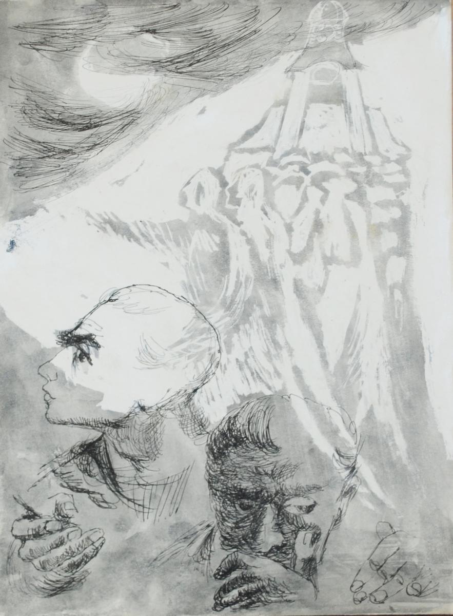 lavírovaná tuš, papír, 30 x 19,8 cm, nepatrně zašlý papír, Antiqari.at Radhošťská, antiqari.at Radhošťská