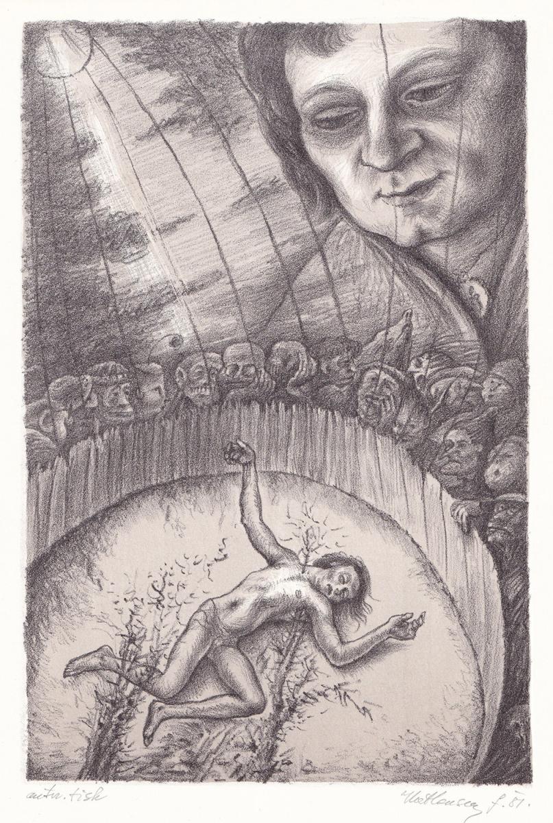 litografie, 1981, 26,3 x 17,5 cm, sign. PD Mathauser f. 81, ze souboru Cirkus 82, vyšlo nákladem autorů jako neprodejný tisk v počtu 60 výtisků, Praha 1982, Antikvariát Dlážděná