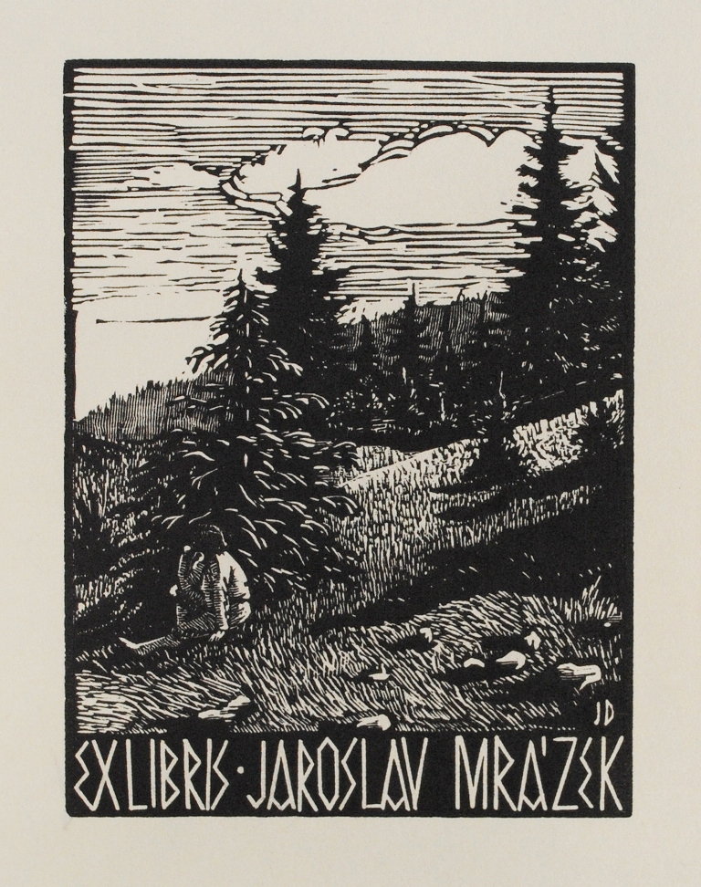 dřevoryt, 9,4 x 6,9 cm, sign. PD Jaroslav Dobrovolský, zezadu papíru autorské razítko, Aantiqari.at Radhošťská,
