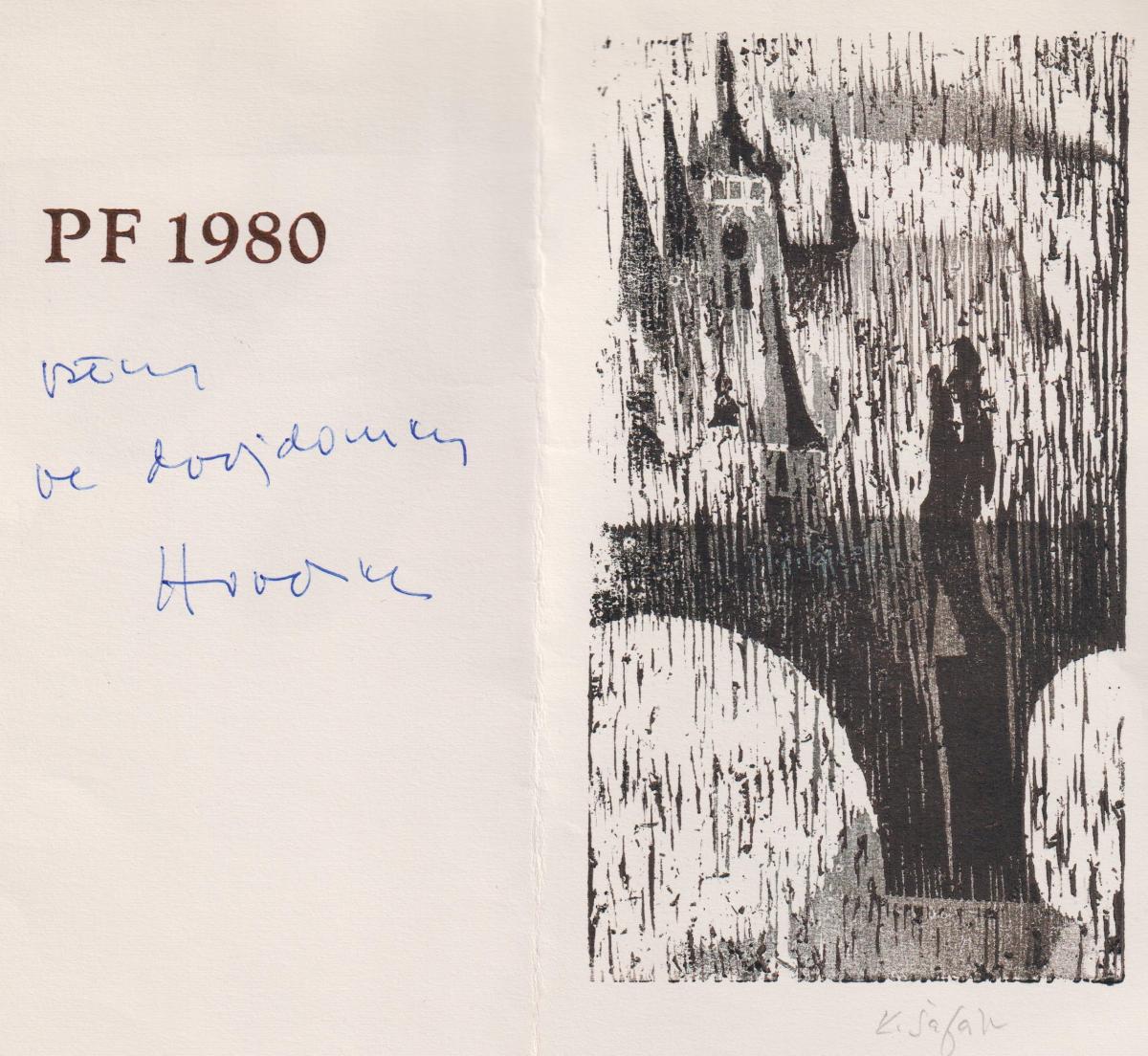 litografie, 1979, 16,5 x 9 cm, sign. PD K. Šafář, Antiqari.at Radhošťská, antiqari.at Radhošťská, žák prof. R. Fialy na Vyšší škole uměleckého průmyslu v Praze, prof. K. Svolinského a Z. Sklenáře na VŠUP tamtéž