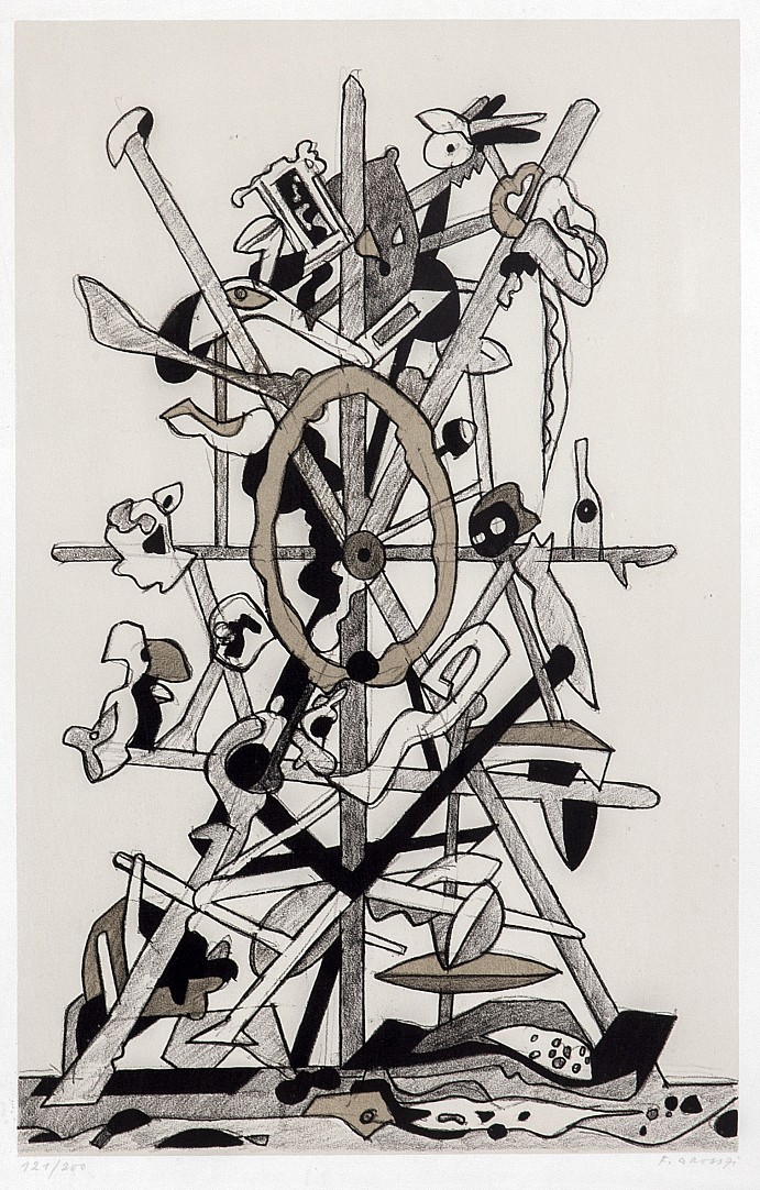 litografie, 1971, 42 x 27 cm, sign. PD F. Gross 71, rám, č. 121/200, žák prof. Kysely na UMPRUM v Praze, člen Skupiny 42, UB, SČUG Hollar a Radar