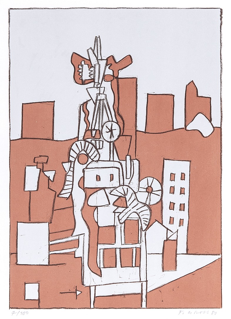 litografie, 1980, 27,5 x 20,5 cm, sign. PD F. Gross 80, č. 7/100, žák prof. Kysely na UMPRUM v Praze, člen Skupiny 42, UB, SČUG Hollar a Radar