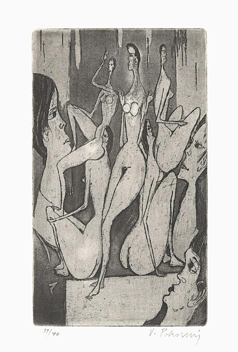 lept, akvatinta, 14,9 x 8,6 cm, sign. PD V. Pokorný, č. 11/40, Aantiqari.at Radhošťská, , the disciple of prof. O. Blazicek, C. Bouda, H. Folkman and J. Sejpko at The Czech Technical University in Prague
