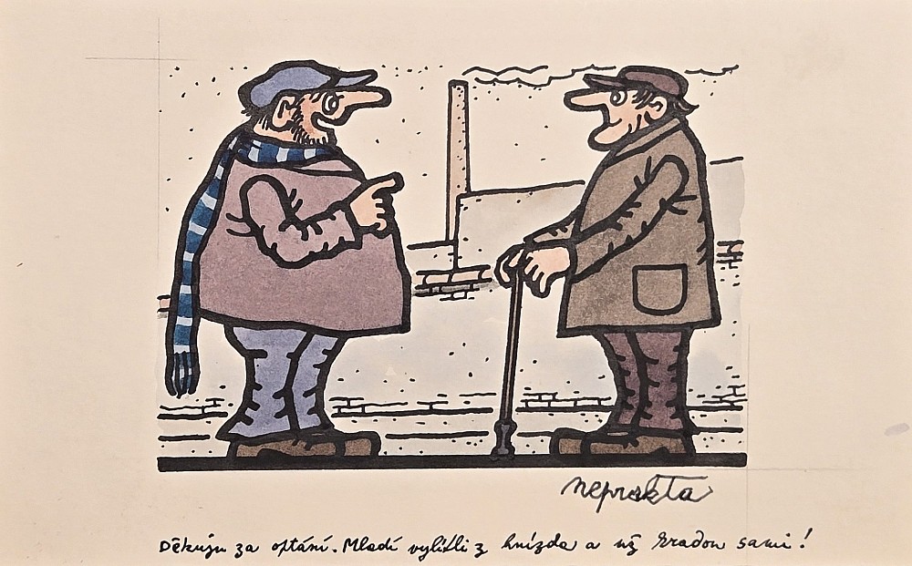 tempera, tuš, papír, 1989, 62 x 44 cm, sign. PD Načeradský 89, rám, mimořádný kreslířský talent Načeradskému umožňoval výtvarně zpracovávat náměty od vážných až po vyloženě groteskní. Na předloženém díle vidíme jeho mistrovské využití redukovaného tvarosloví pro vyjádření všedního námětu. Jeho vysok…