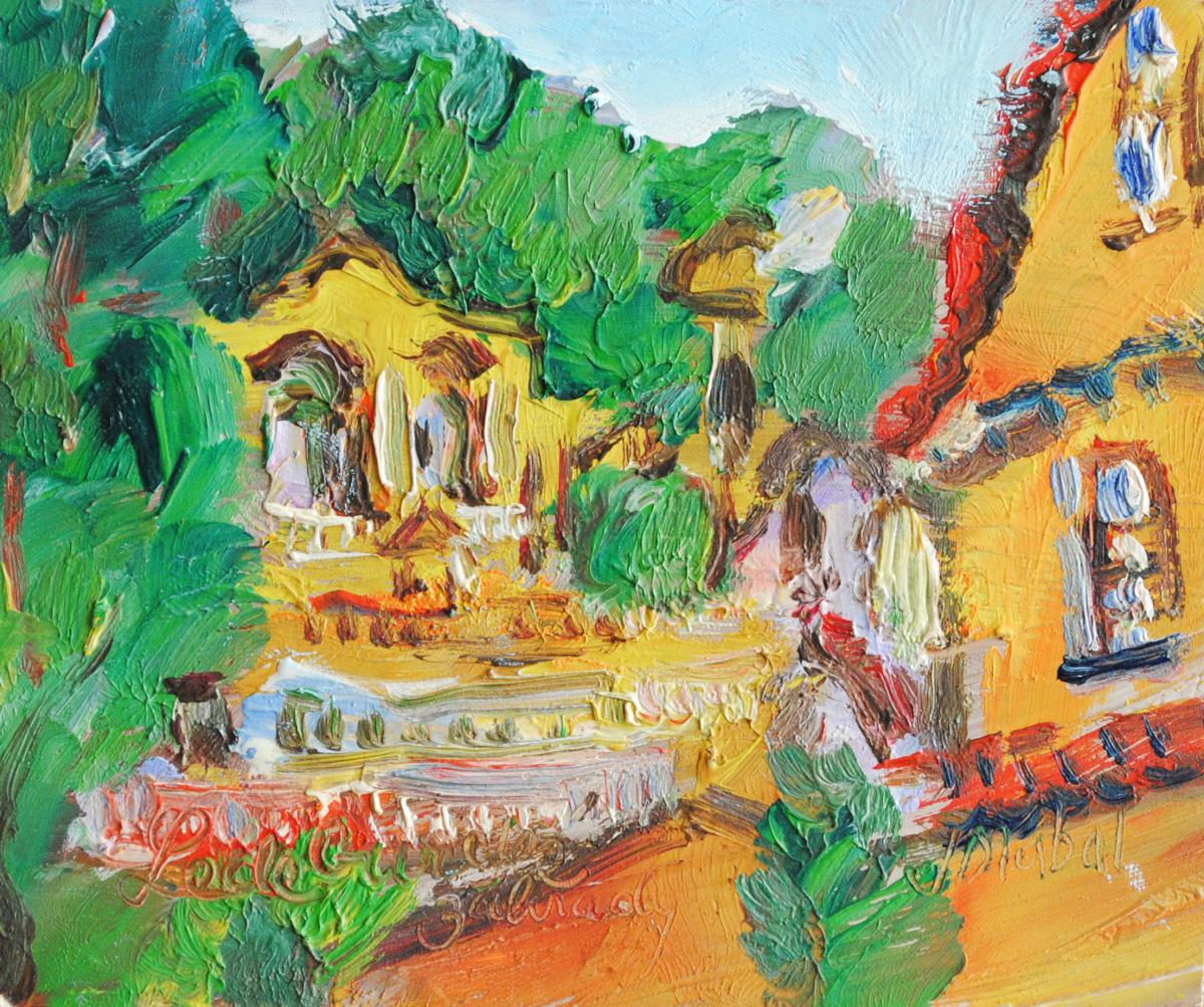 olej, papír, 11 x 24,3 cm, sign. PD J. Dlabal, značeno LD Meryemana Efesus, Antiqari.at Radhošťská, antiqari.at Radhošťská, maloval s A. Doležalem a L. Musilem, největší úspěch zaznamenal v Japonsku
