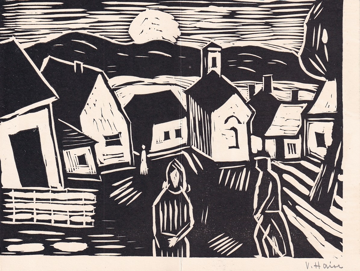 dřevoryt, 1962, 14,5 x 19,4 cm, sign. PD V. Haise, Antikvariát Dlážděná, žák prof. M. Švabinského na AVU v Praze
