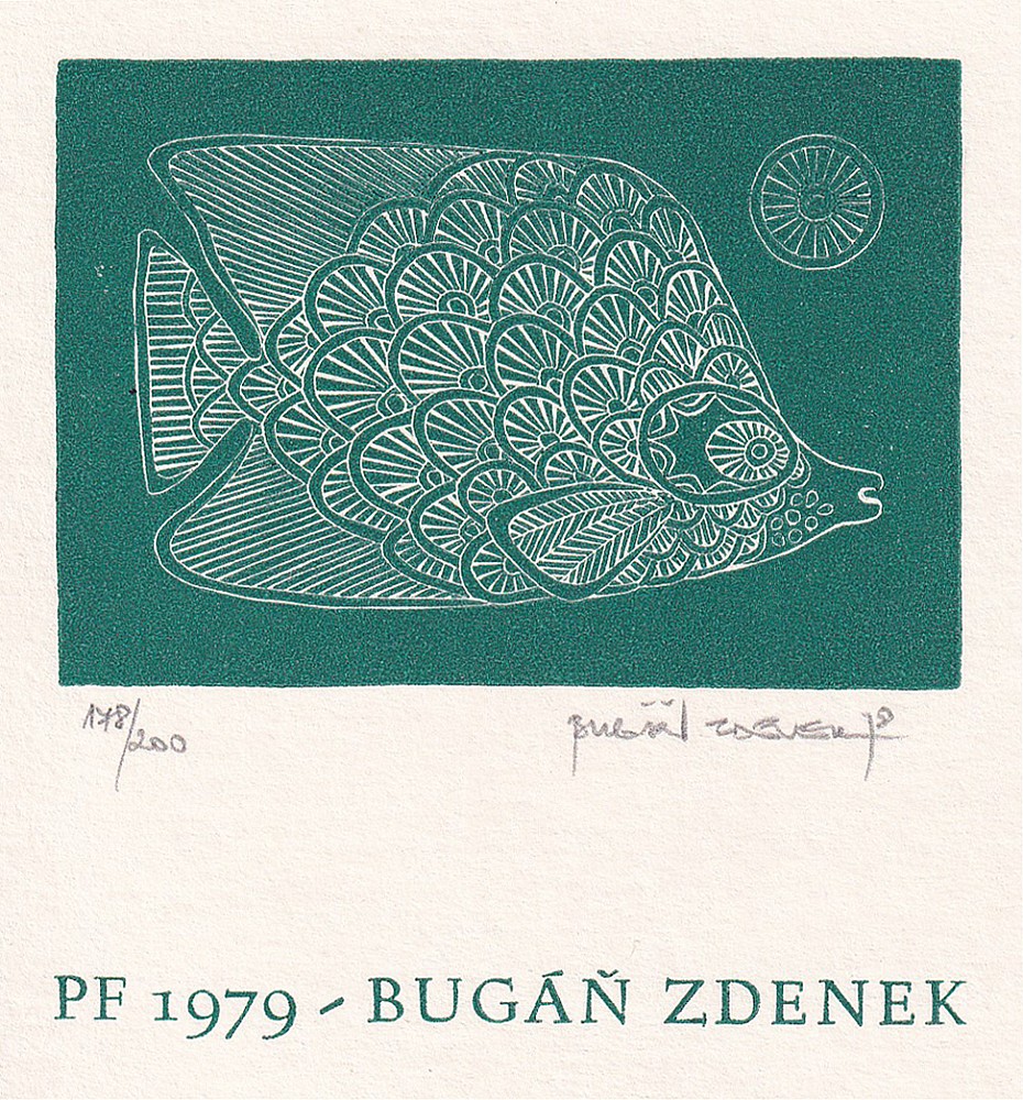 litografie, 1978, 5 x 7,2 cm, sign. PD Bugáň Zdeněk 78, č. 178/200, PF 1979, Provenance: Antiquarian Dlážděná, the private disciple of J. Bubak