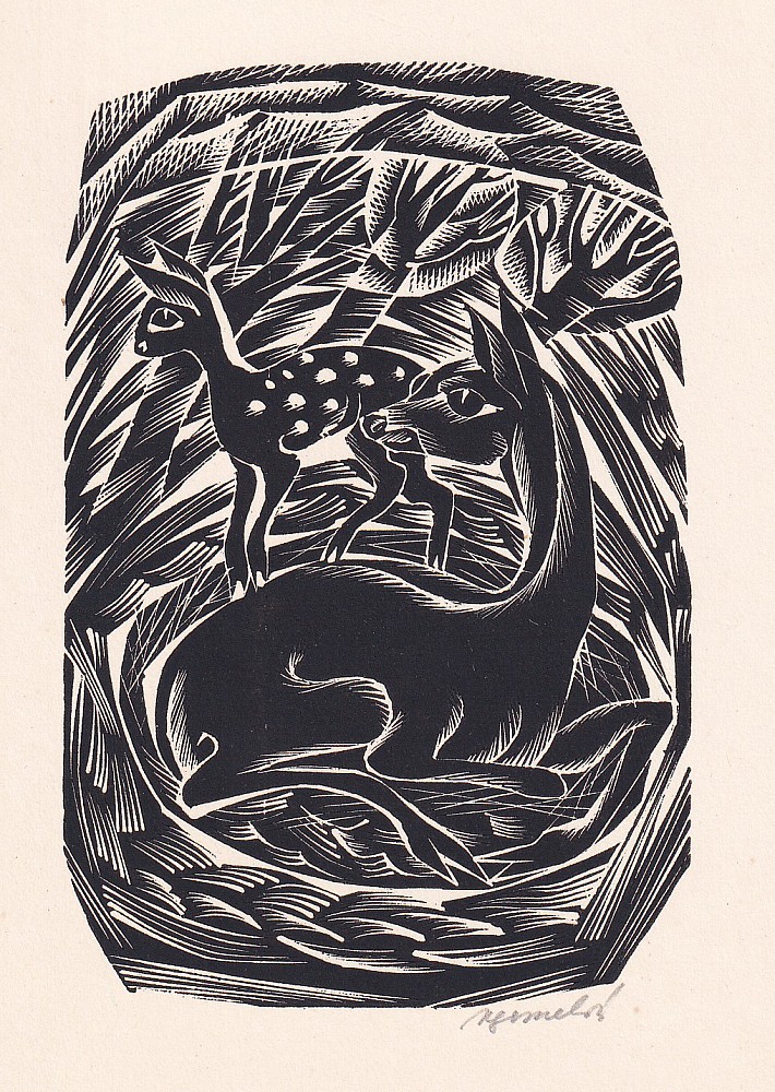 tisk, 1982, 6,5 x 10 cm, značeno v tisku PD F. Emler, Aantiqari.at Radhošťská, , the disciple of prof. O. Nejedly and V. Pukl at The Academy of Fine Arts in Prague