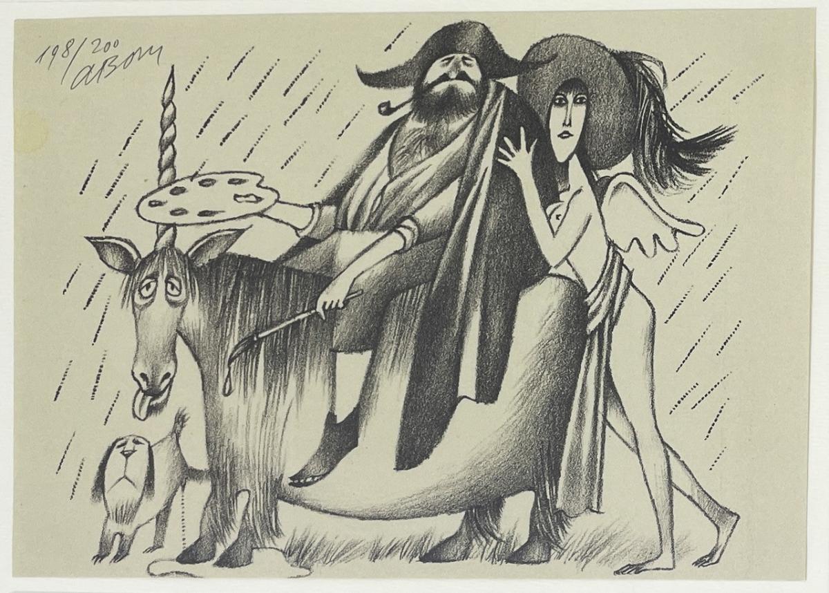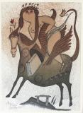 3 x grafický list, 14,5 x 9; 14 x 20; 20 x 14,5 cm, vše sign. ABorn, rám, 1x lept, 2x litografie, vše adjustováno v jednom rámu
