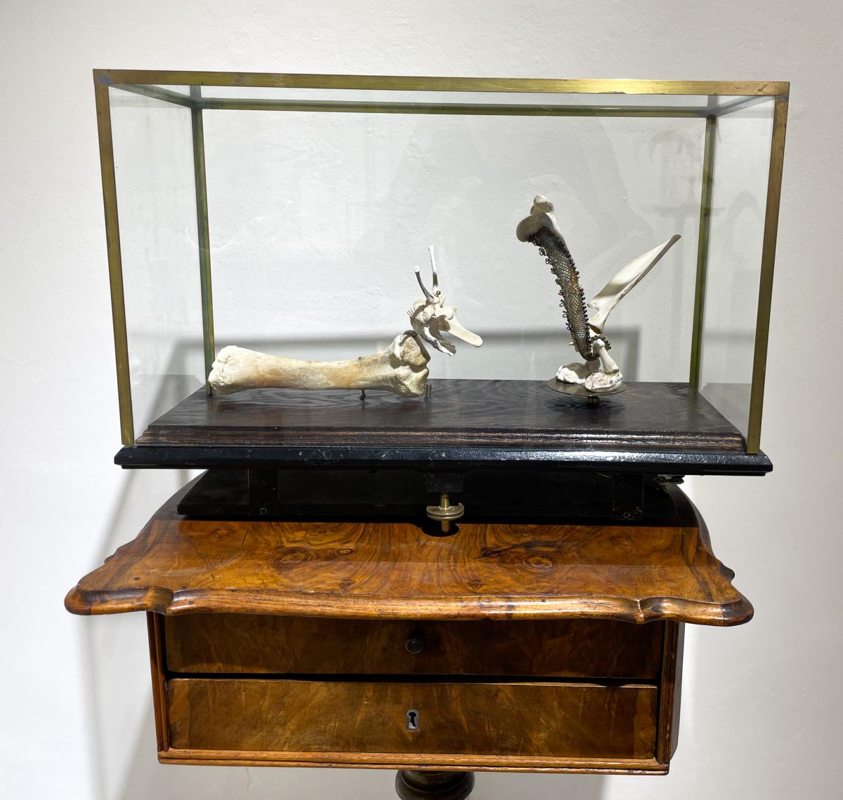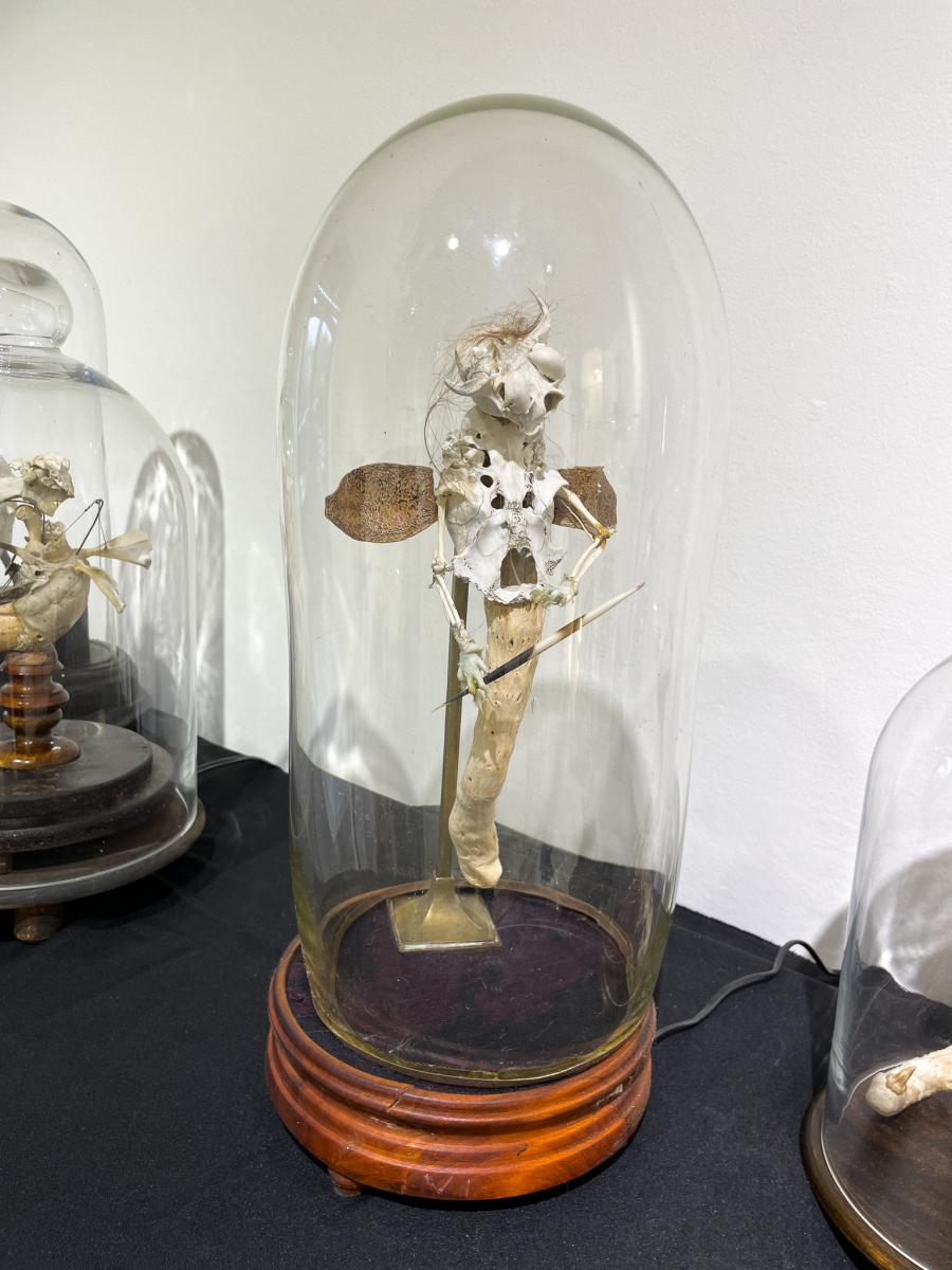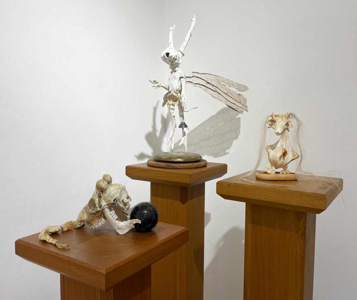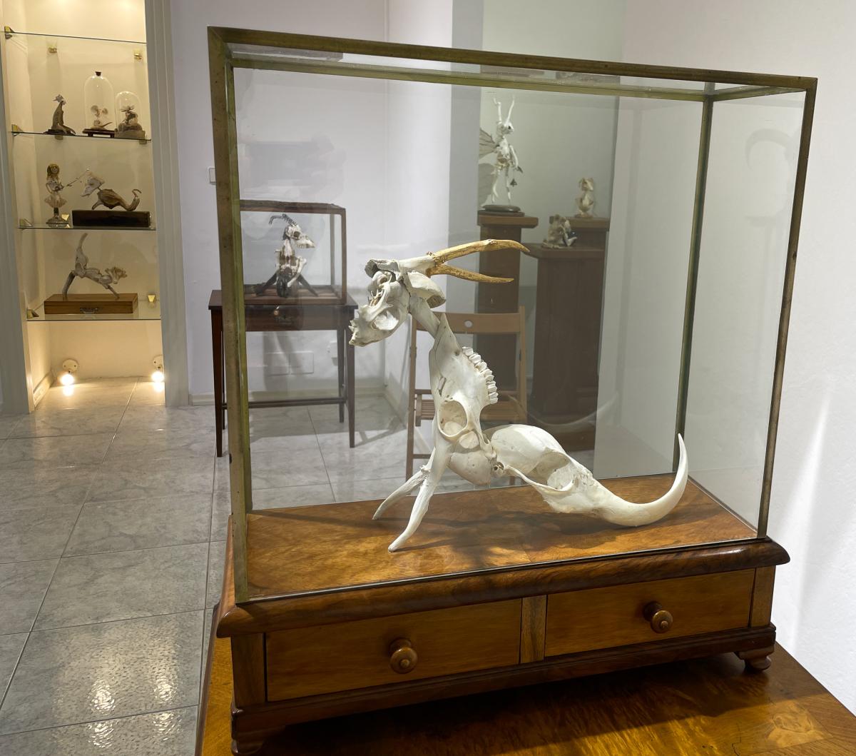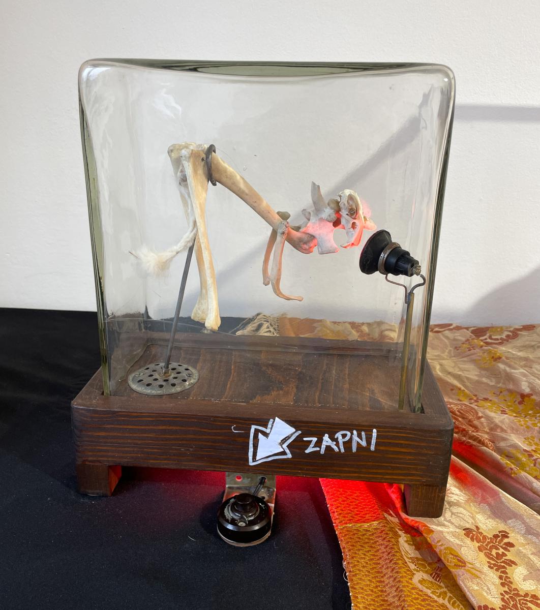 Skutečný tvůrce je zároveň Pygmalionem i demiurgem. Tvoří nový svět s bytostmi, které nás dokáží dojmout, protože jsou v jistém smyslu živé. Monstra a zvířata, které vytvořila Stanislava Stuchlá a jež shromáždila ve svém „kabinetu“, jsou také bytosti toužící po životě. Zrozené z kostí, fragmentů předmětů, kusu korálu, peří, tykví, cedníků, sítí, koleček, pružin, drátů... ožívají, houpají se, díky magii několika ozubených koleček se klaní a znovu před námi přehrávají tajemství života: je to tatáž magie, která nás jako děti udivovala při pohledu na loutkové divadlo. Ve světě, kde realita ustupuje virtuálnímu, kde materiály, organická hmota, jejich bohatá hmatová struktura, neuvěřitelná vynalézavost a úžasné drobné nedokonalosti přírodních tvarů jsou opomíjeny ve prospěch plochého, hladkého a standardizovaného světa, v době, kdy dovednost, kutilství, zručnost a vynalézavost tv .... Více informací zde ....